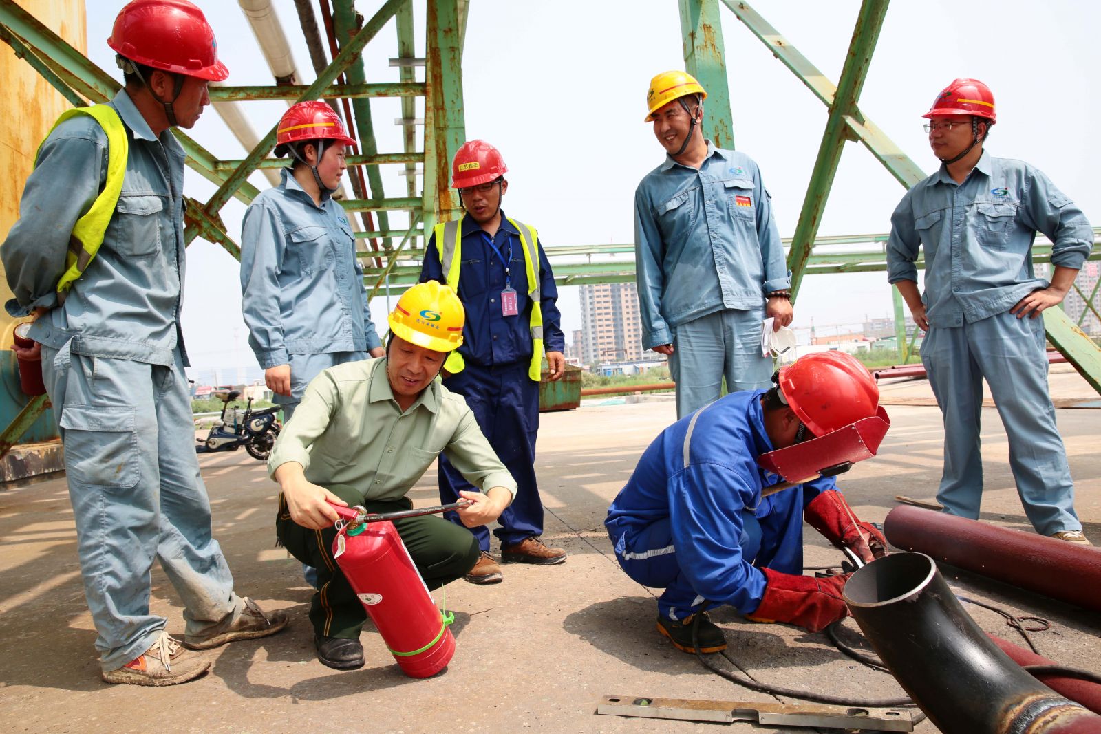 7月24日,公司安全生產大檢查人員冒著34度的高溫,分兩組對氨庫、氣瓶庫、柴油庫、酸堿庫以及露天高溫鋼材切割現場等場所進行安全隱患大排查,對發現的問題做到即查即改,確保高溫天氣安全生產。
