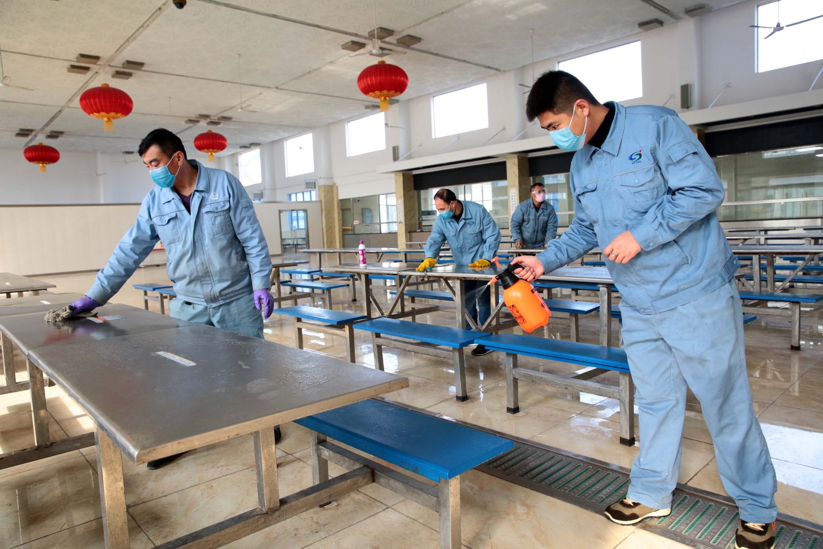公司內部的事宜由副總經理焦旺盛統一負責安排落實,嚴抓內部管控。健康安環部負責布置落實各班組建立職工體溫臺帳,發現異常情況及時報告。加強檢查頻率,建立日報告制度,負責廢舊口罩回收處理;對接供應部做好應急防護物資的備、采工作,每天統計好公司的應急物資并按要求上報上級部門;安排好人員的測溫工作。物管中心定時對食堂、浴室等公共場所消毒;保衛部加強門禁管理,做好進入公司人員的監管,非我公司職工未經批準一律暫停進入公司;同時負責口罩的發放;設備部、技術部通知公司外委承包商暫停進廠作業;人力資源部負責通知勞務承包商,除從事正常倒班的外用工外,其余一律暫停進廠作業;黨群部負責通過公司內網、微信公眾號等宣傳平臺加大防控工作的正面宣傳和引導的力度,多宣傳一些防控知識,多宣傳防控期間公司一些典型照片、事跡,同時向上級主管部門報道;辦公室做好節假日延期的相關通知與安排,及時傳達上級精神,協調、配合好公司內部各部門、車間做好防控的相關工作。