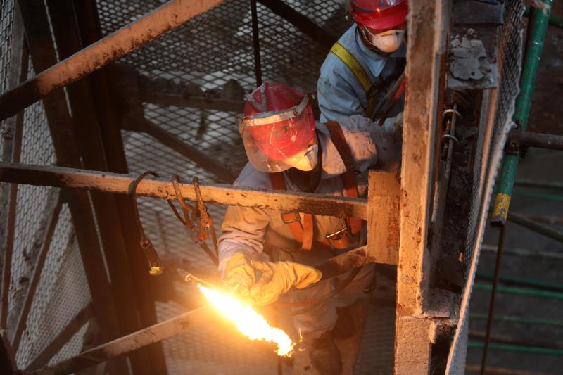 2月3日,2#石灰窯突發(fā)故障,對此,檢修車間領導帶領班組成員7人在做好安全以及病毒防御各項措施后,加班加點,其中黨員同志技術員朱孔慧和班長謝文東沖鋒在前,從早上八點一直工作到了夜里十點,終于將故障消除,順利實現了石灰窯運行。
