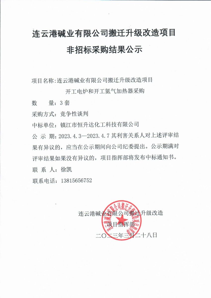 開工電爐和開工氮?dú)饧訜崞鞣钦袠?biāo)采購結(jié)果公示