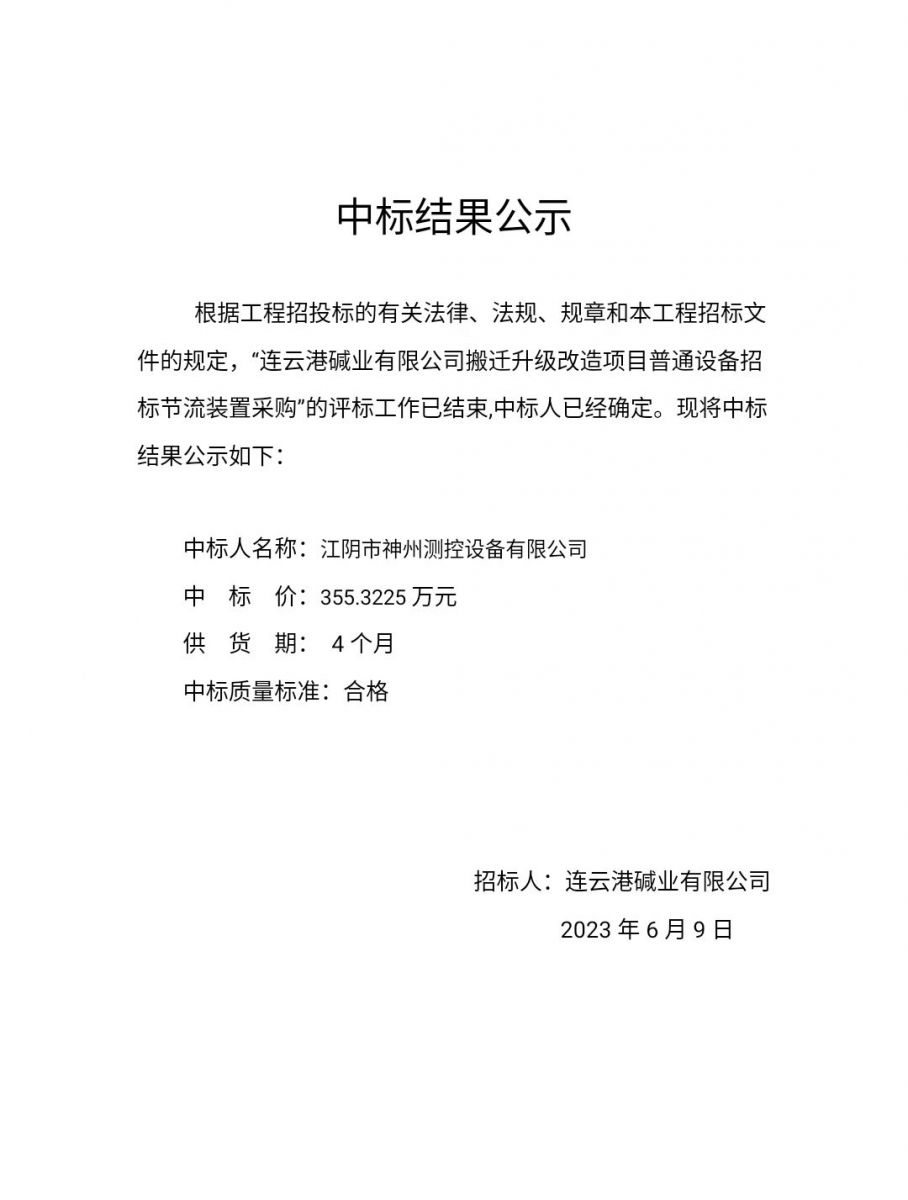 節(jié)流裝置采購(gòu)中標(biāo)公示