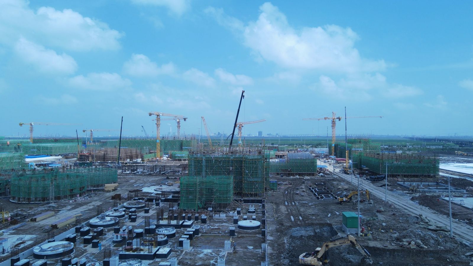 ⑸合成氨二標段271原料煤儲運破碎樓三層底板放線,#1轉運站頂層梁板柱澆筑,#2轉運站三層支撐架搭設,鋼筋綁扎、支模,角撐、斜撐、圍檁安裝;820合成氨循環水站清凈廢水池上部結構,塔下水池墻壁支模;711煤漿制備二層腳手架搭設,鋼筋綁扎,支模,安裝預埋件,初期雨水池池壁鋼筋綁扎,支模,支撐架搭設,套管安裝;762壓縮機廠房上部結構支模;761冷箱基礎冷箱防護墻拆模;膨脹機房上部結構鋼筋綁扎;712氣化框架立柱腳手架搭設,鋼筋綁扎,基礎承臺鋼筋綁扎,支模,防腐;灌注樁施工;842空分機柜間鋼筋綁扎;713渣水處理集渣池鋼筋清理,設備基礎預埋螺栓安裝。