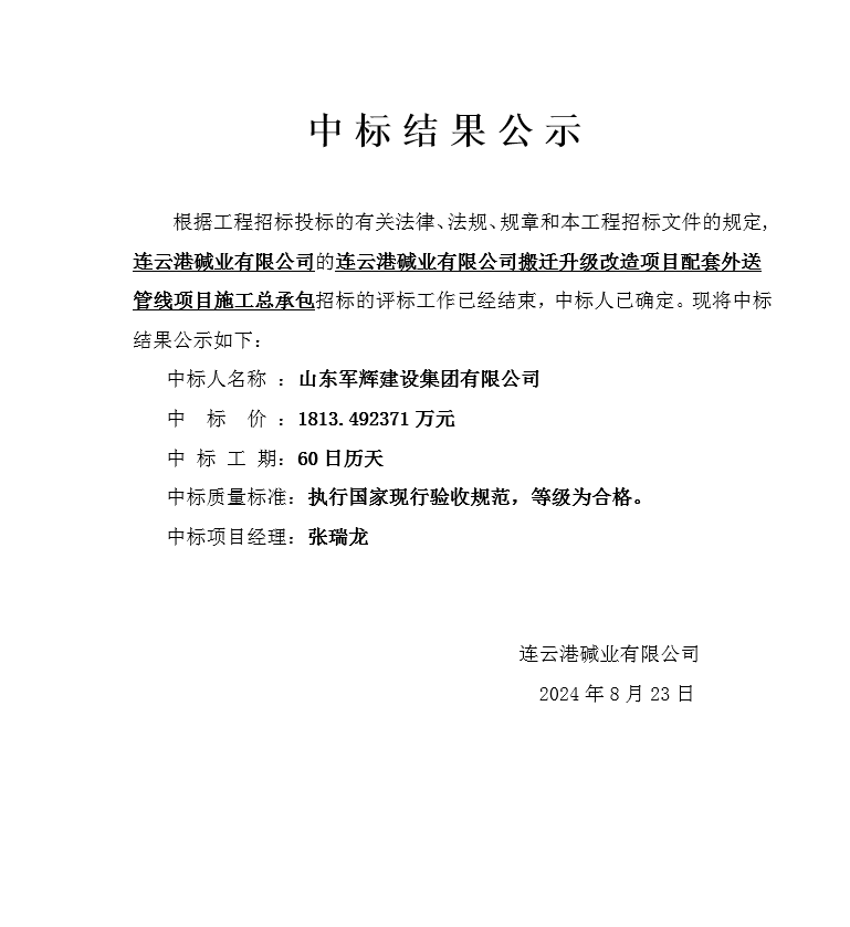 搬遷升級改造項目配套外送管線項目中標結果公示